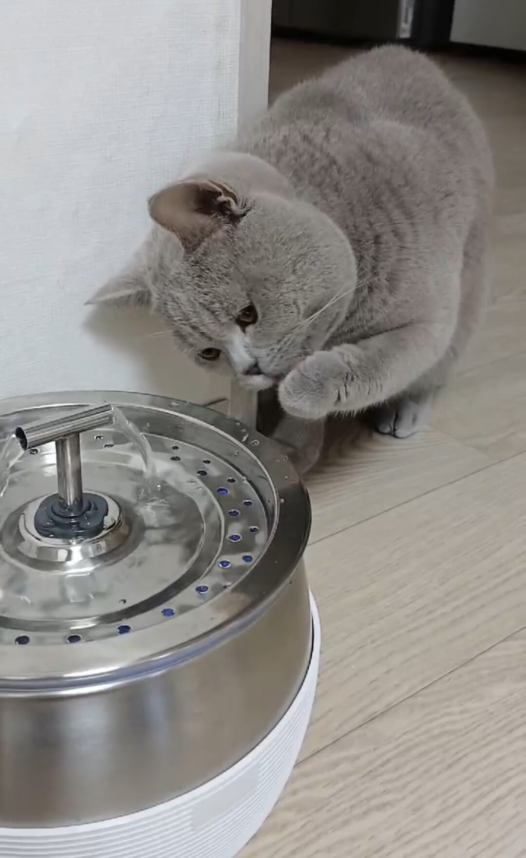 고양이는 본능적으로 흐르는 물을 고여 있는 물보다 신선하게 인식합니다. 야생에서는 흐르는 물이 박테리아 오염 가능성이 낮았기 때문입니다. 여기서 박테리아 오염이란 고여 있는 물에서 세균이 증식하여 고양이의 건강을 해칠 수 있는 상태를 의미합니다(출처: 식품의약품안전처). 제가 스테인리스 재질의 분수형 급수기를 설치하고 나서 가장 놀라웠던 점은 가르쳐주지 않았는데도 고양이가 스스로 관찰하고 물을 마시기 시작했다는 것입니다.